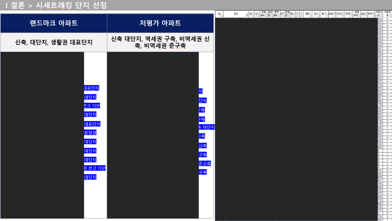 시세트레킹을 위한 대표 단지 3개 뽑는 방법 : 비교적 세대수가 많고, 선호도가 높은 단지 선택