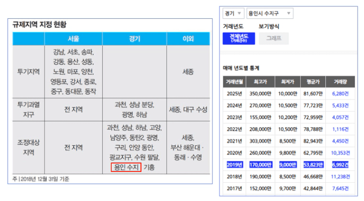 2019년도 수지구가 조정대상지역으로 지정된 이후