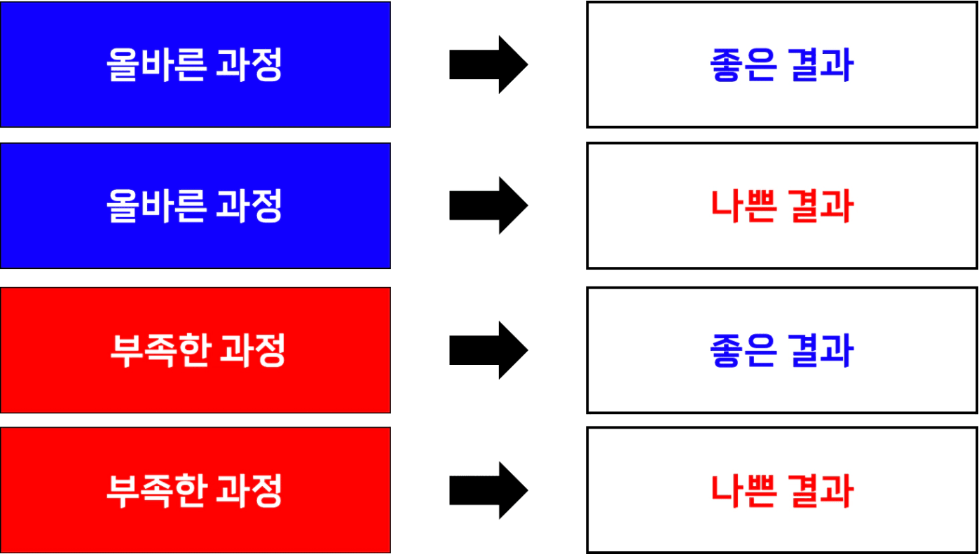 반면에 과정이 부족 했음에도 운으로 얻은 결과라면