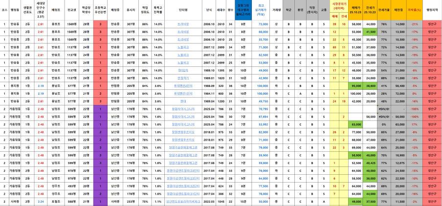 [전생] 10월 전국 랜드마크 및 생활권대장 시세(지방 광역시 및 중소도시)