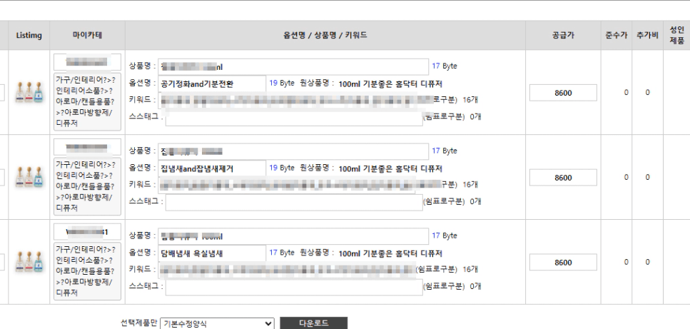 월부야님, 상품들의 옵션 가격이 다른 경우 웹유플랫에서 자동으로 도매처에서 끌고와 셋팅을 해줍니다. 지금 보여주신 상품은 높은 가격으로 모든 상품을 웹유플랫에서 그냥 설정해둔 것 같습니다.^^ 혹여나 추후 옵션 상품의 가격을 따로 가져가고 싶다 하신다면, 우측에 상품 수정을 누르셔서 추가 비용 등 가격을 추가하시거나, 목록에서 보이는 공급가를 변경하시면 변경된 가격으로 나만의 자료를 가져가실 수 있습니다. ^^
