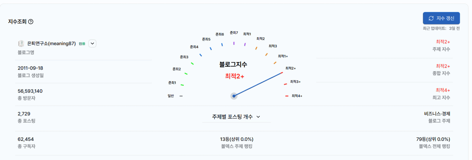 블덱스에서 제 블로그 지수를 봤더니 최적2+로 나오네요,