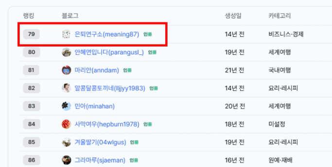 저 같은 경우 발악님보다 방문자수가 훨씬 적지만 (전 일2~4만명 대) 키워드 위주의 검색블로그이다보니, 랭킹은 79위로 훨씬 높게 나타납니다.