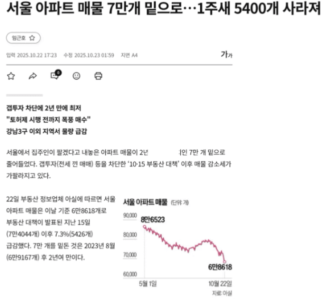 올해 5월 8만개가 넘었던 서울 아파트 매물은