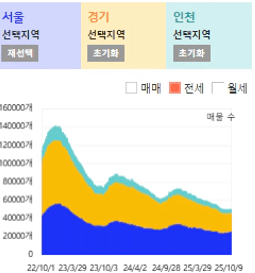 이런 상황에서 수도권 지역 전세 물량은 규제 이전부터