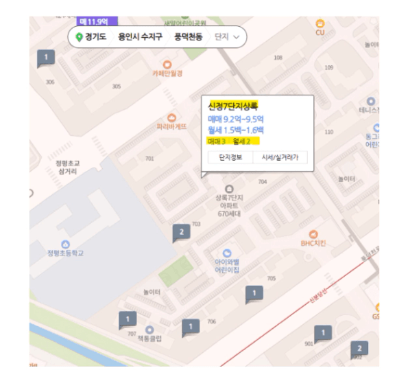 수지구에 있는 신정7단지 상록이라는 아파트입니다.