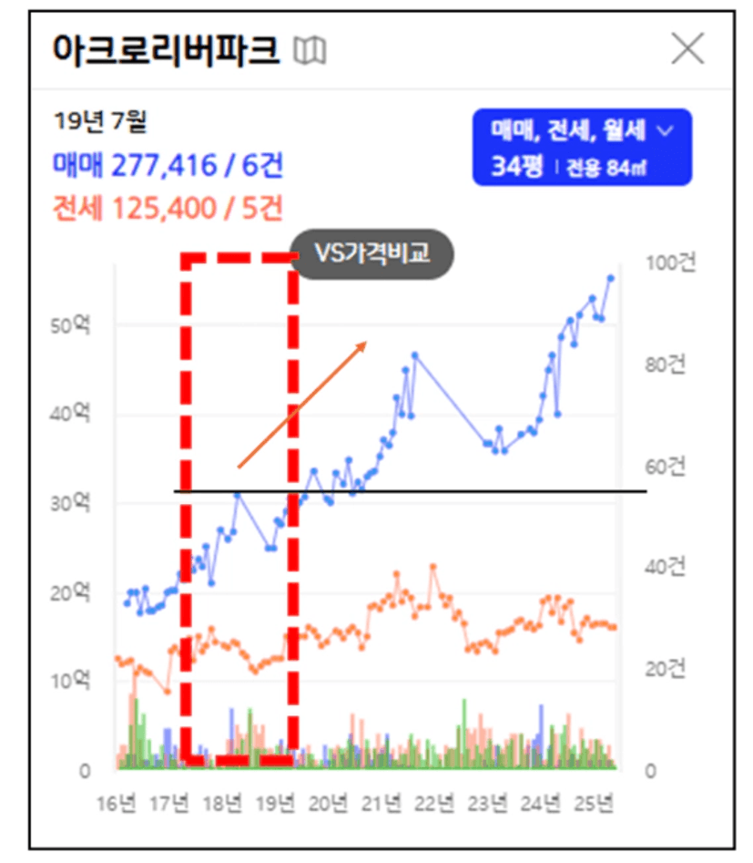 2017년부터 보면, 대략 1억~1.5억 정도 올랐는데요,