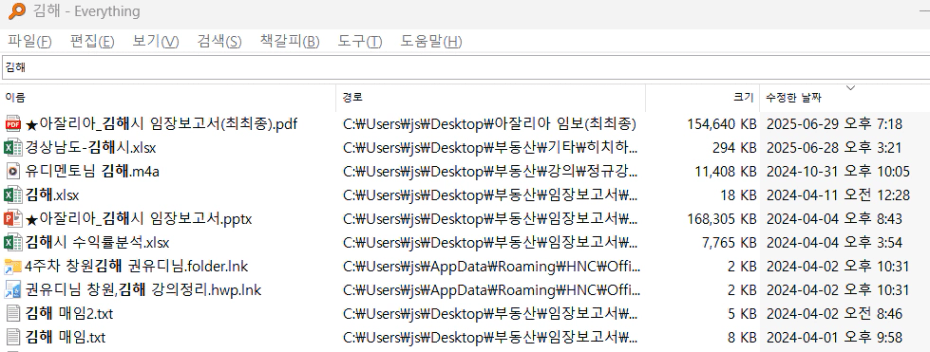 Everything 창에서 몇글자만 치면 한번에 검색 가능