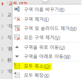 해당 구역 우클릭 → ‘모두축소’를 누르고