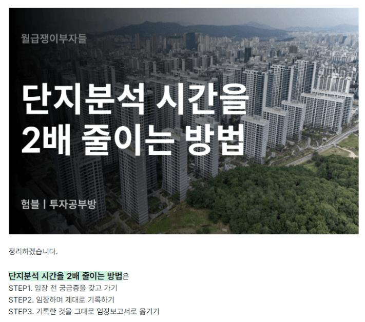 임보 : 결국 또 단지분석이 흐지부지… 험튜님이 나눠주신 것 다음달 꼭 적용하겠습니다!
