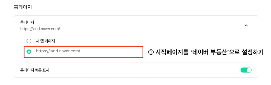 ① 시작페이지를 ‘네이버 부동산’으로 설정하기
