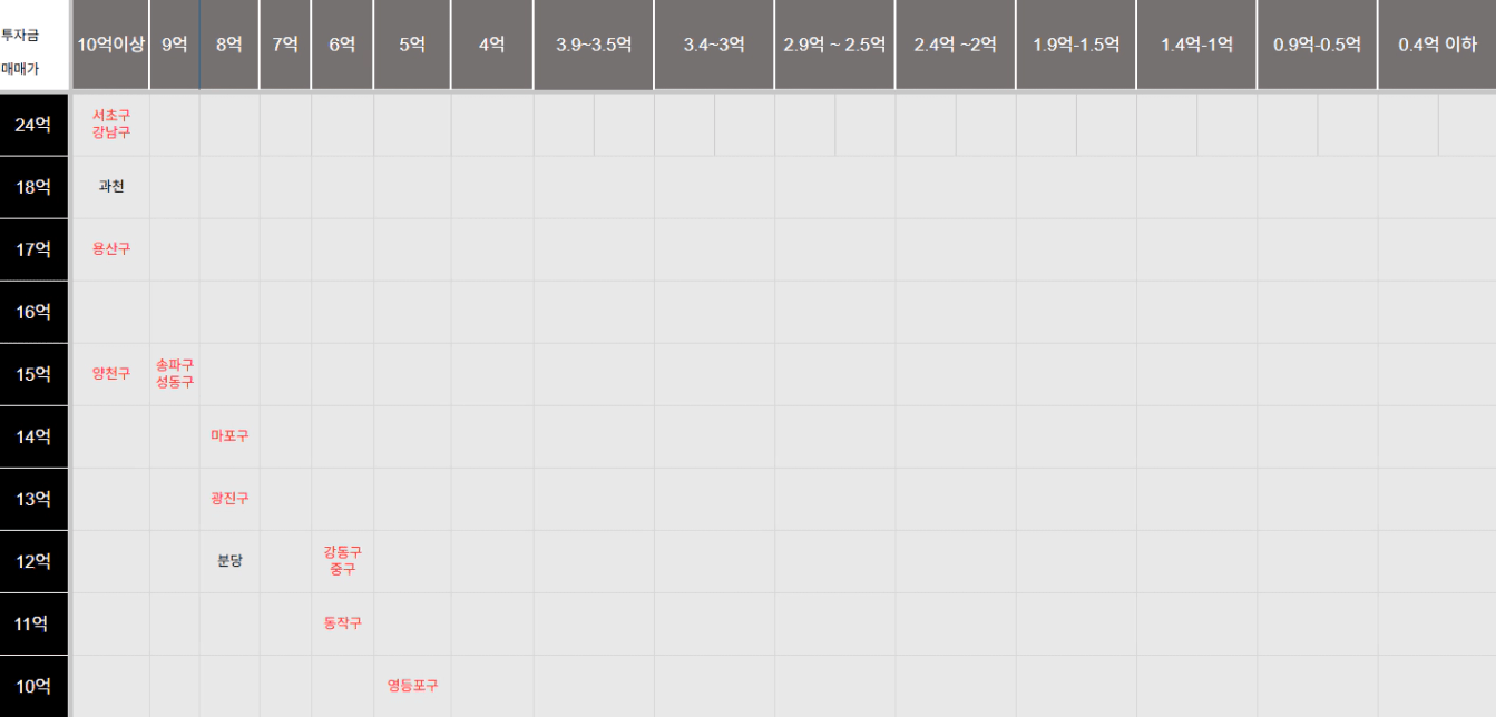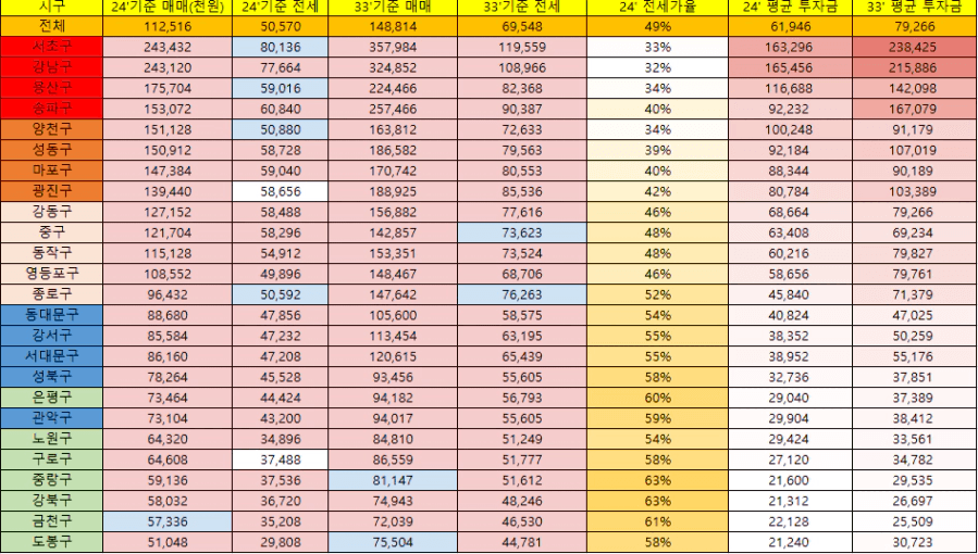 서울은 1년 사이에 평균 9.7억에서 11.2억이 되었구나(약 1.5억 상승)