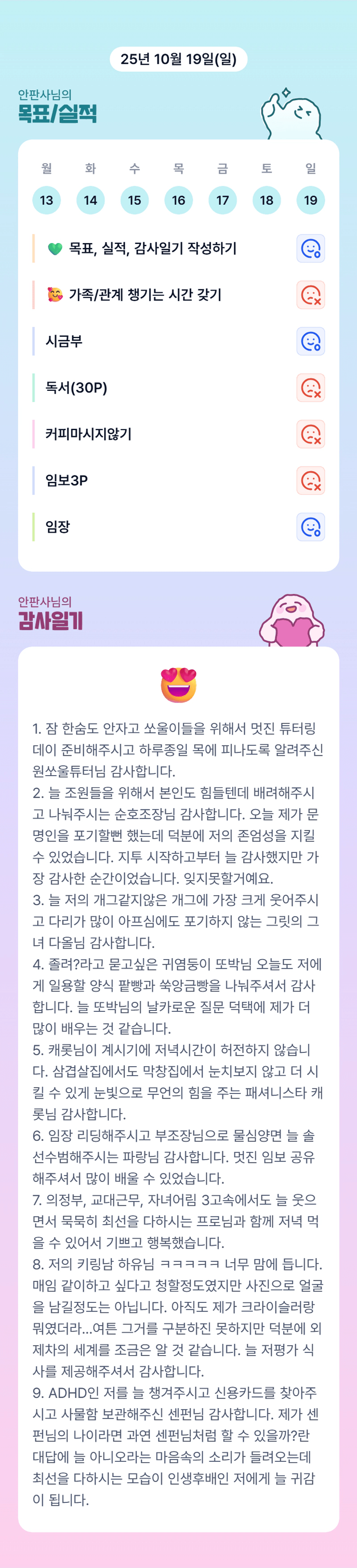감사한 마음은 어제의 감사일기를 공유함으로써 대신 갈음하겠습니다.
