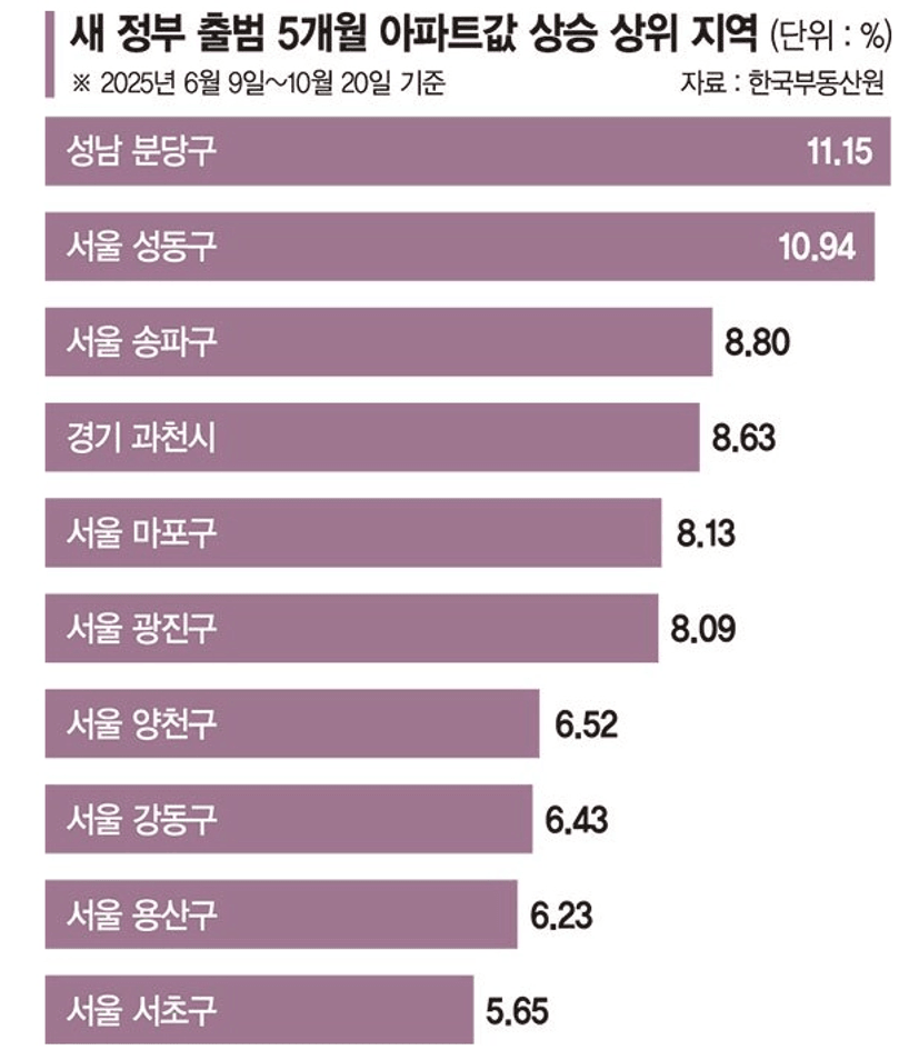 통계 지표를 봤을 때 분당, 성동이 두 자릿수 상승율을 보였고