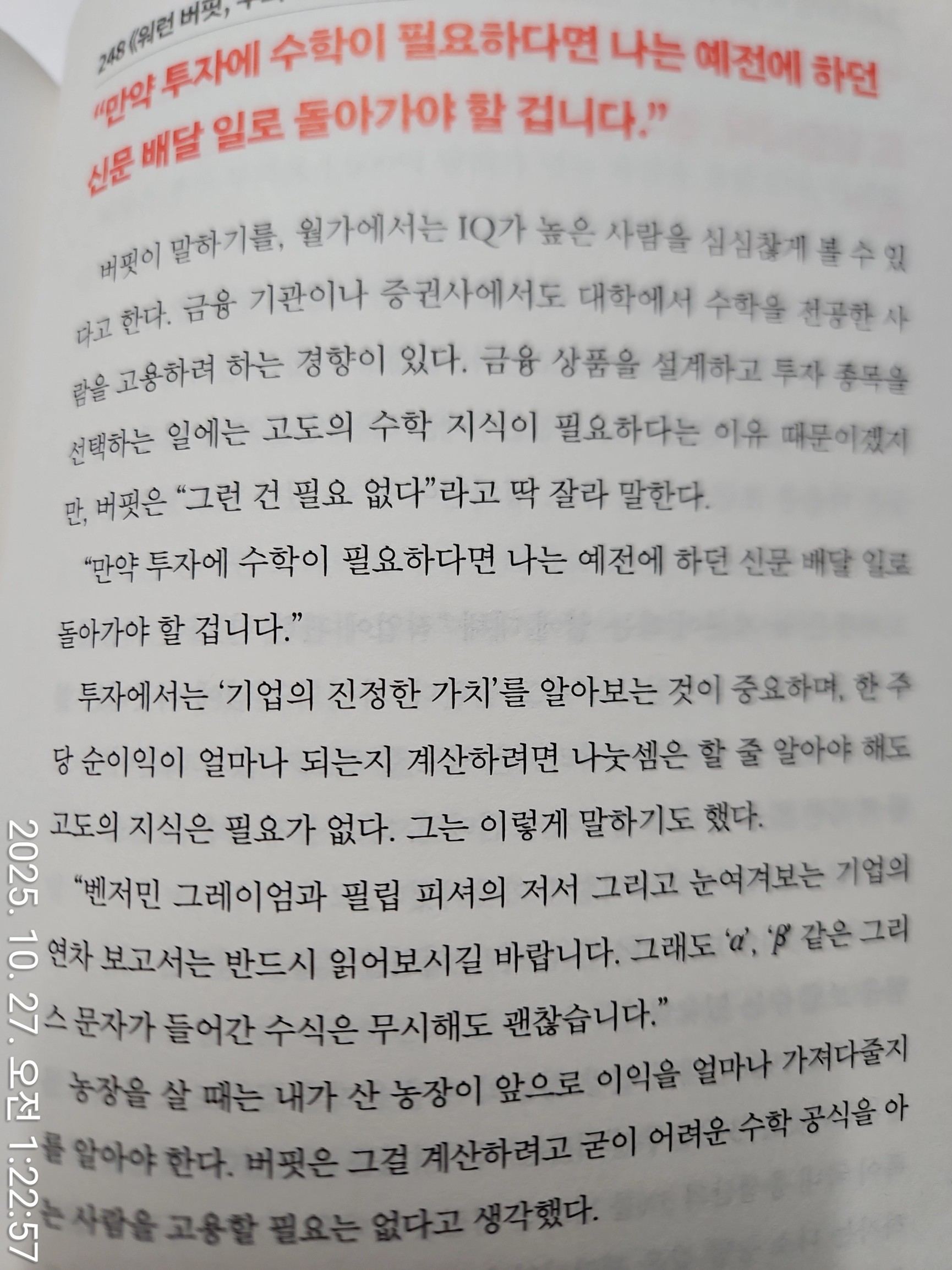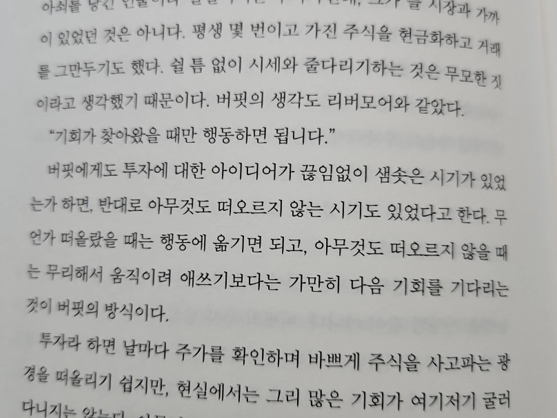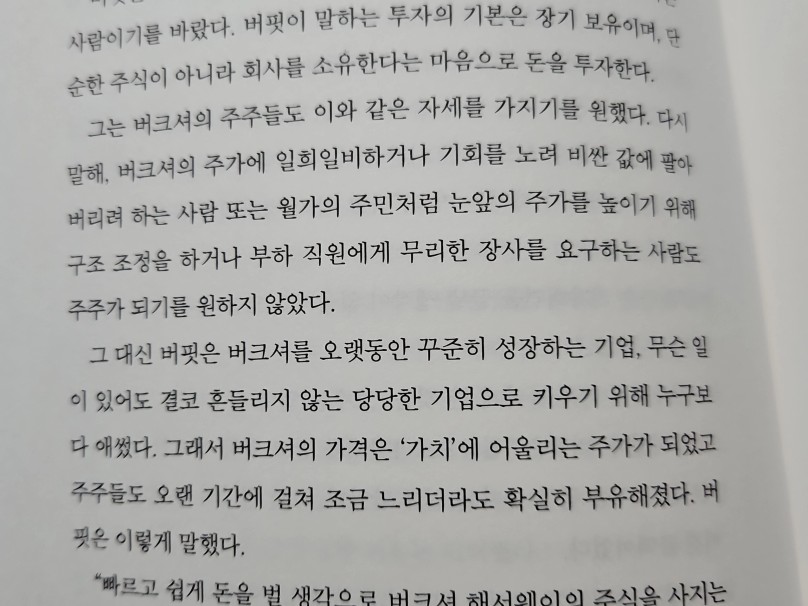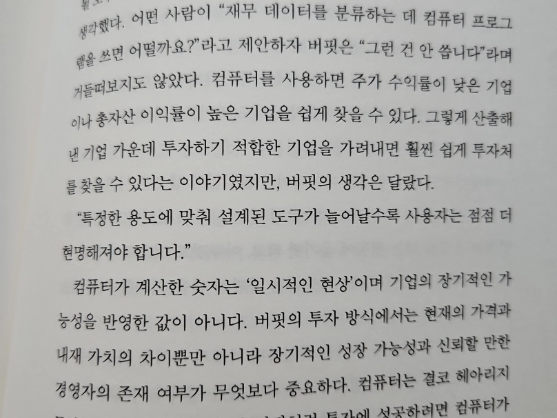 -숫자는 일시적인 현상이며 기업의 장기적인 가능성을 반영한 값이 아니다. 버핏에게는 현재의 가격과 내재적인 가치, 장기적인 성장 가능성,신뢰할만한 전문적인 경영자가 더 중요하다.