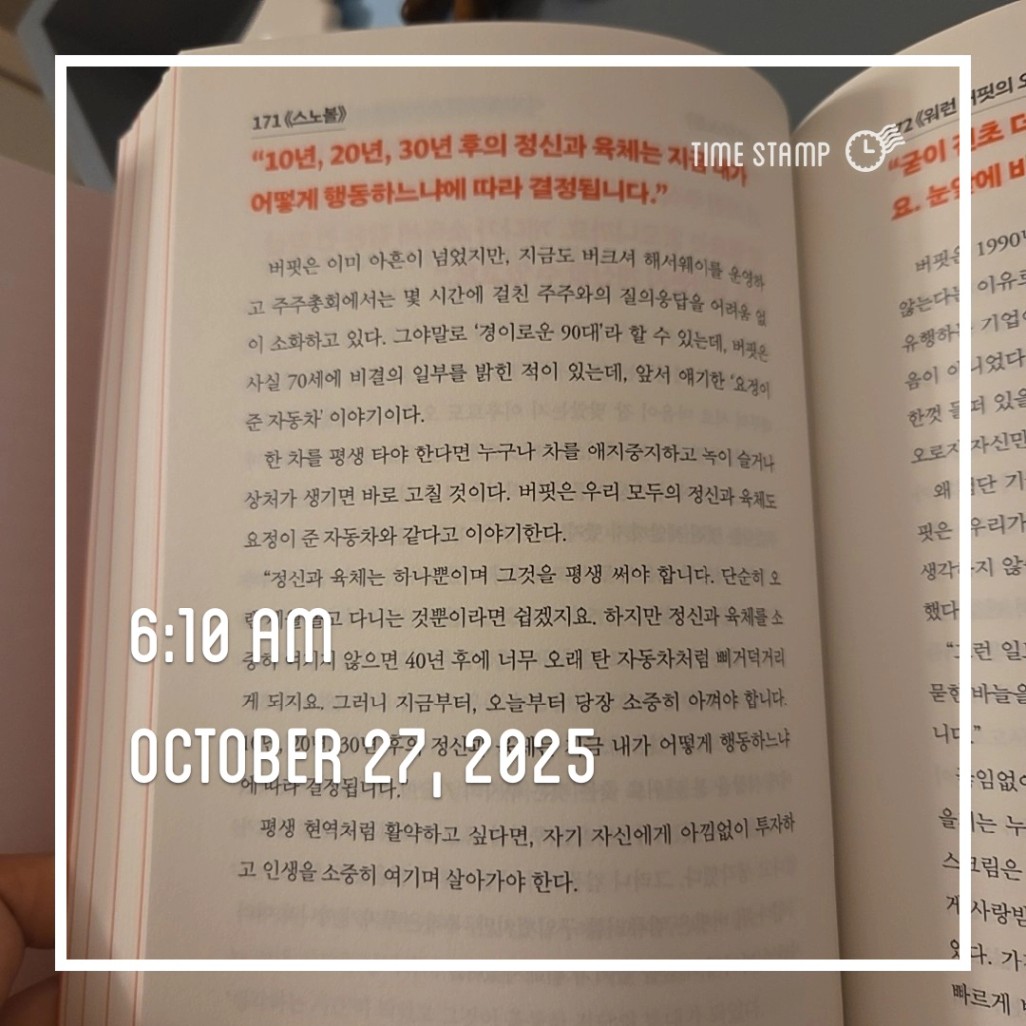 평생 현역처럼 활약하고 싶다면, 자기자신에게 아낌없이 투자하고 인생을 소중히 여기며 살아가야 한다.