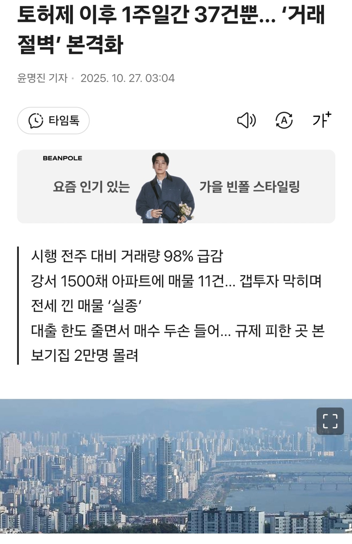 • 토지거래허가제 시행 이후 서울 및 수도권 일부 지역에서 주택 거래량이 급감하며 '거래절벽' 현상이 나타나고 있으며, 특히 갭투자가 막히면서 전세 낀 매물이 줄어들고 대출 한도 축소로 매수세가 위축되고 있다.