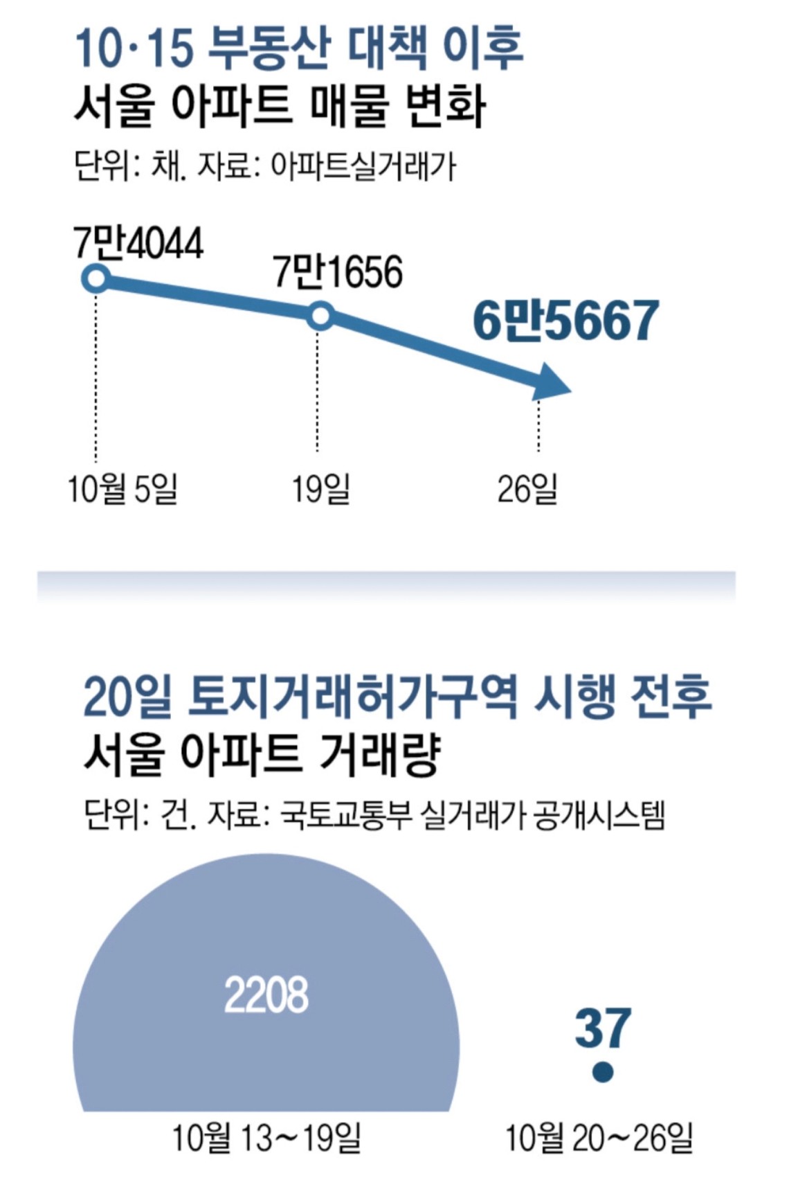 • 토지거래허가구역 시행 일주일 만에 거래량이 98% 이상 급감했으며, 규제 시행 전 2208건에서 37건으로 대폭 감소했고, 매물 또한 감소하여 서울 아파트 매물은 8.4% 줄어들었다.