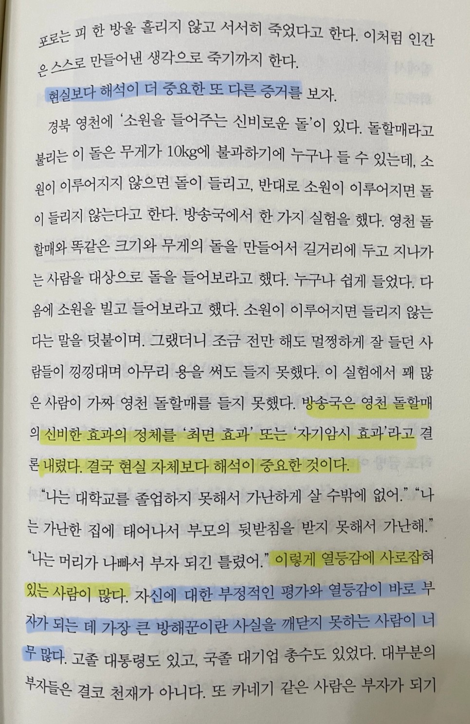 p.199 자신에 대한 부정적인 평가와 열등감이 바로 부자가 되는 데 가장 큰 방해꾼이란 사실을 깨닫지 못하는 사람이 너무 많다.
