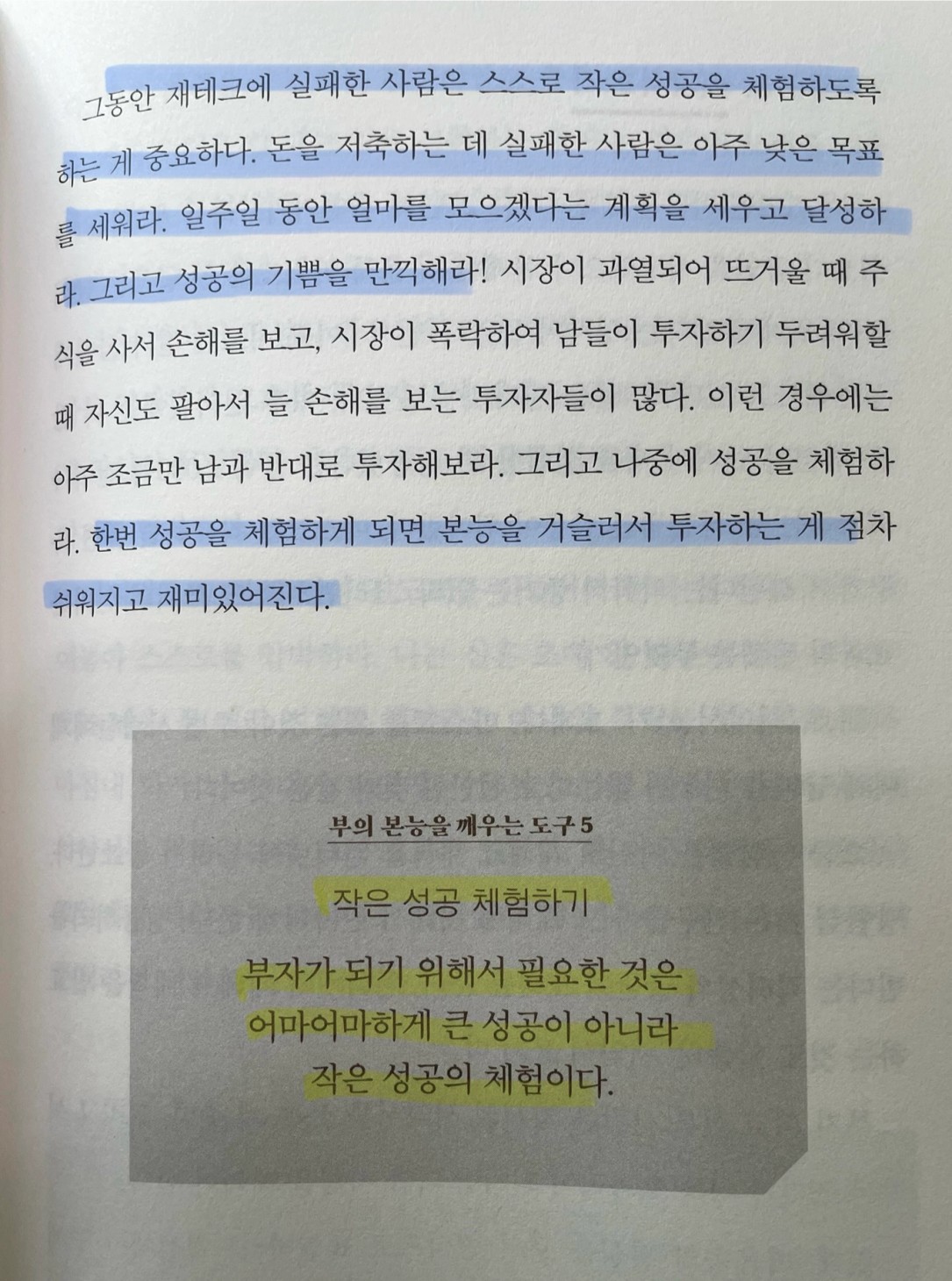 -부자가 되기 위해서 필요한 것은 어마어마하게 큰 성공이 아니라 작은 성공의 체험이다.