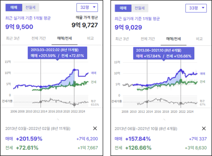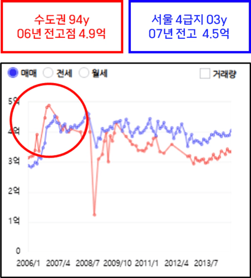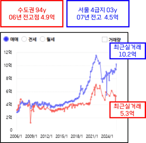2006년 전고점이 달랐던 두 단지