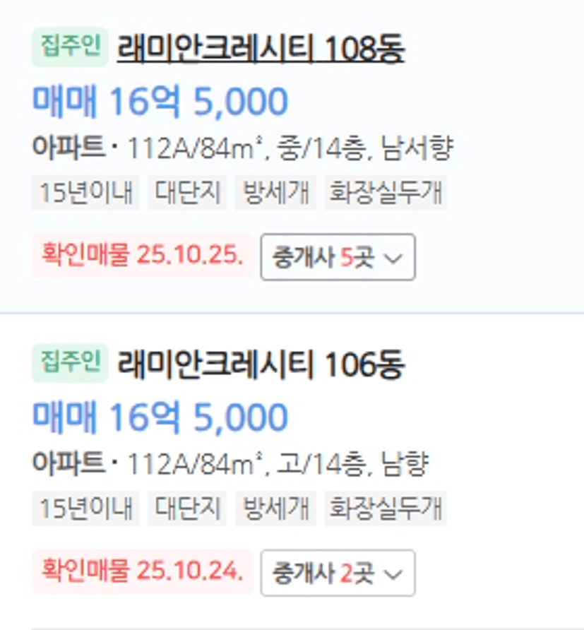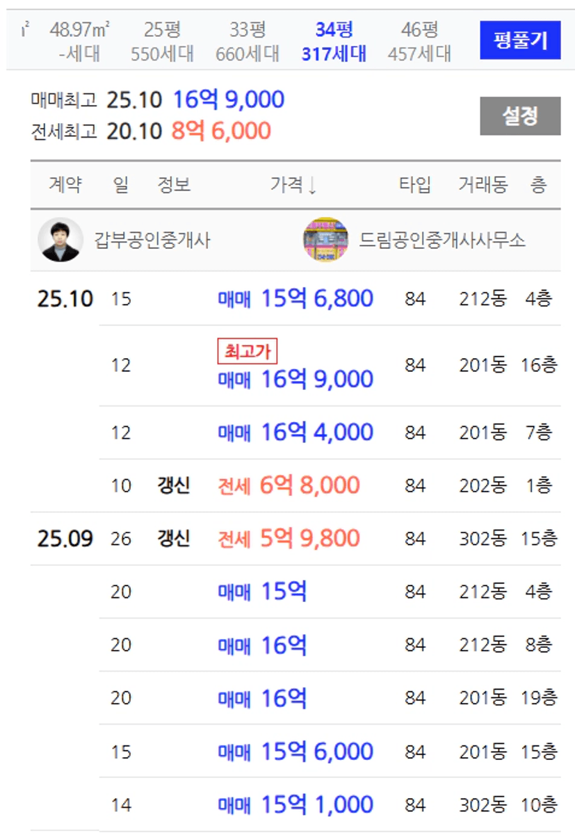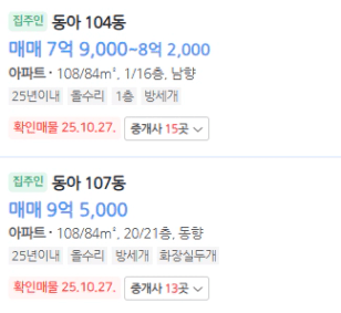 답십리 두산 동아 84는 나란히 8.6-7억 거래