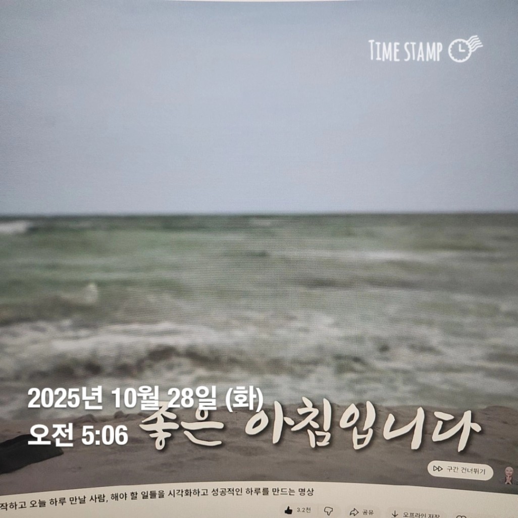 새벽형 인간 울자유님 오늘도 어김없이 아침명상으로 하루를 시작하는 멋진 루틴왕👍 오늘도 좋은하루 되세요💞