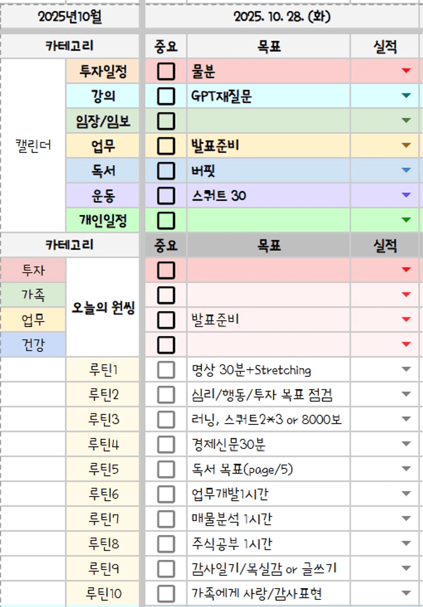 아침에 계획을 세우고 저녁에 복기를 합니다.