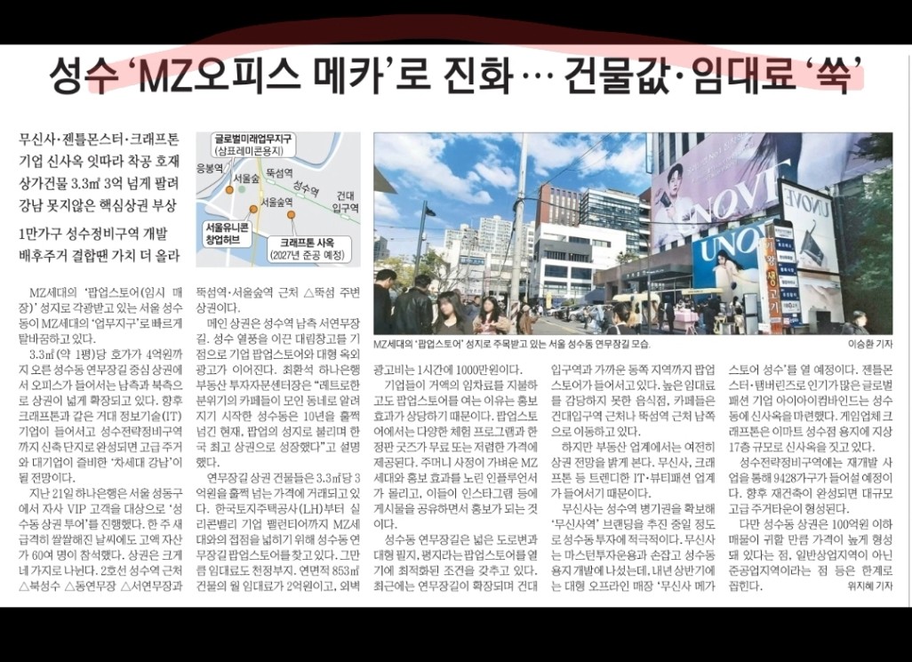 MZ오피스들이 모인다. 성수 땅의 가치는 상승중📈
