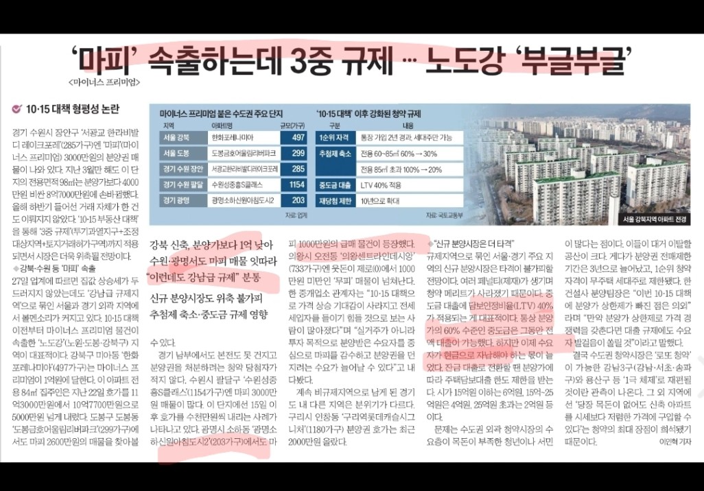 10.15 대책으로 분양시장도 위축된 상황. 중도금도 40% 줄어들고 잔금대출도 줄어든 상황이라 이미 청약받은 사람도 할 사람도 불만이 나올 수 밖에 없는 상황😅 공급 늘릴 수 있나???!!