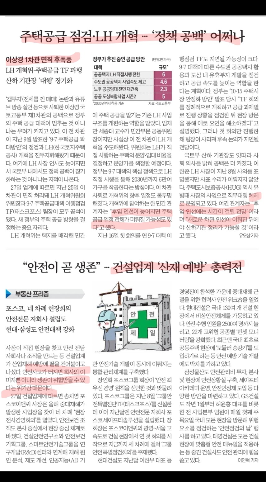 국토부 1차관 면직되고 결론적으론 정책 공백이 생겼고, 안전점검도 강화되면서 공급은 더 쉽지 않아짐…