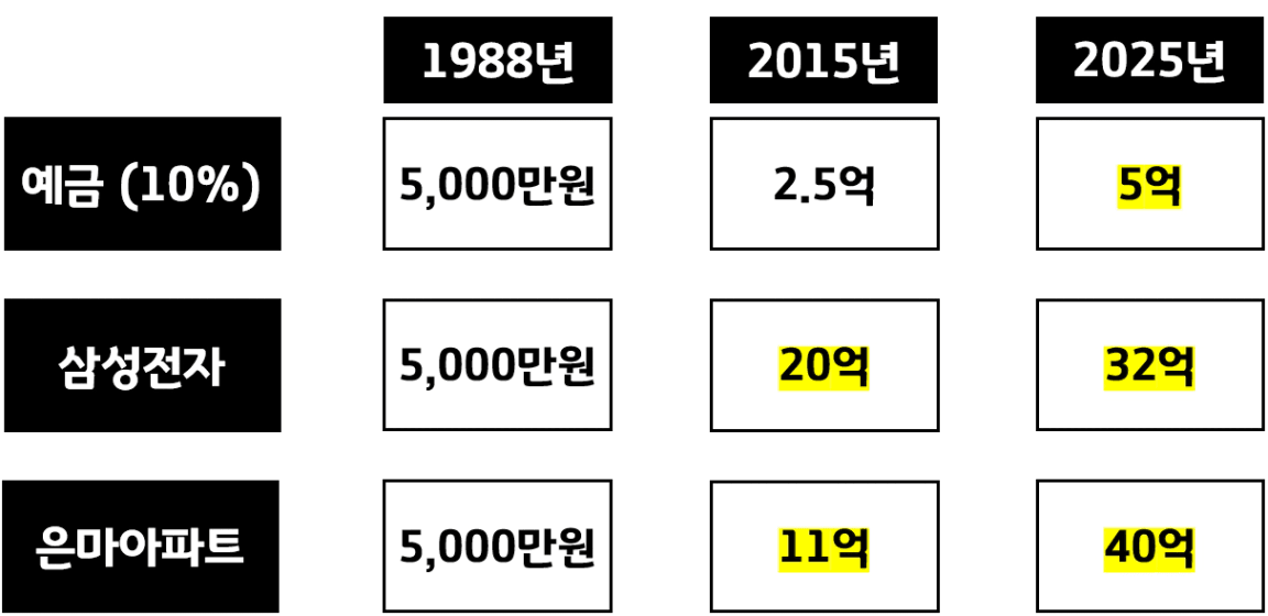 1988년에 5천만원을 받았다면 여러분은 어디에 투자를 하고 싶은가요?