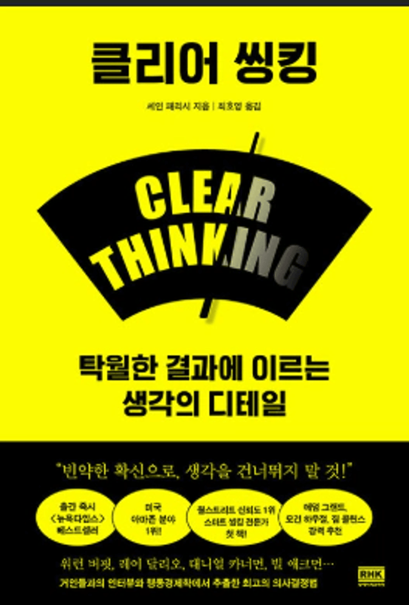 비범한 성공을 이룬 거인들과의 인터뷰와 생각의 대가들의 철학에서 추출한 최선의 의사결정법을 담은 클리어 씽킹은 출간 즉시 뉴욕타임스 베스트셀러, 아마존 분야 1위를 차지하며 최고의 가치를 선사한 도서로 평가받고 있다.