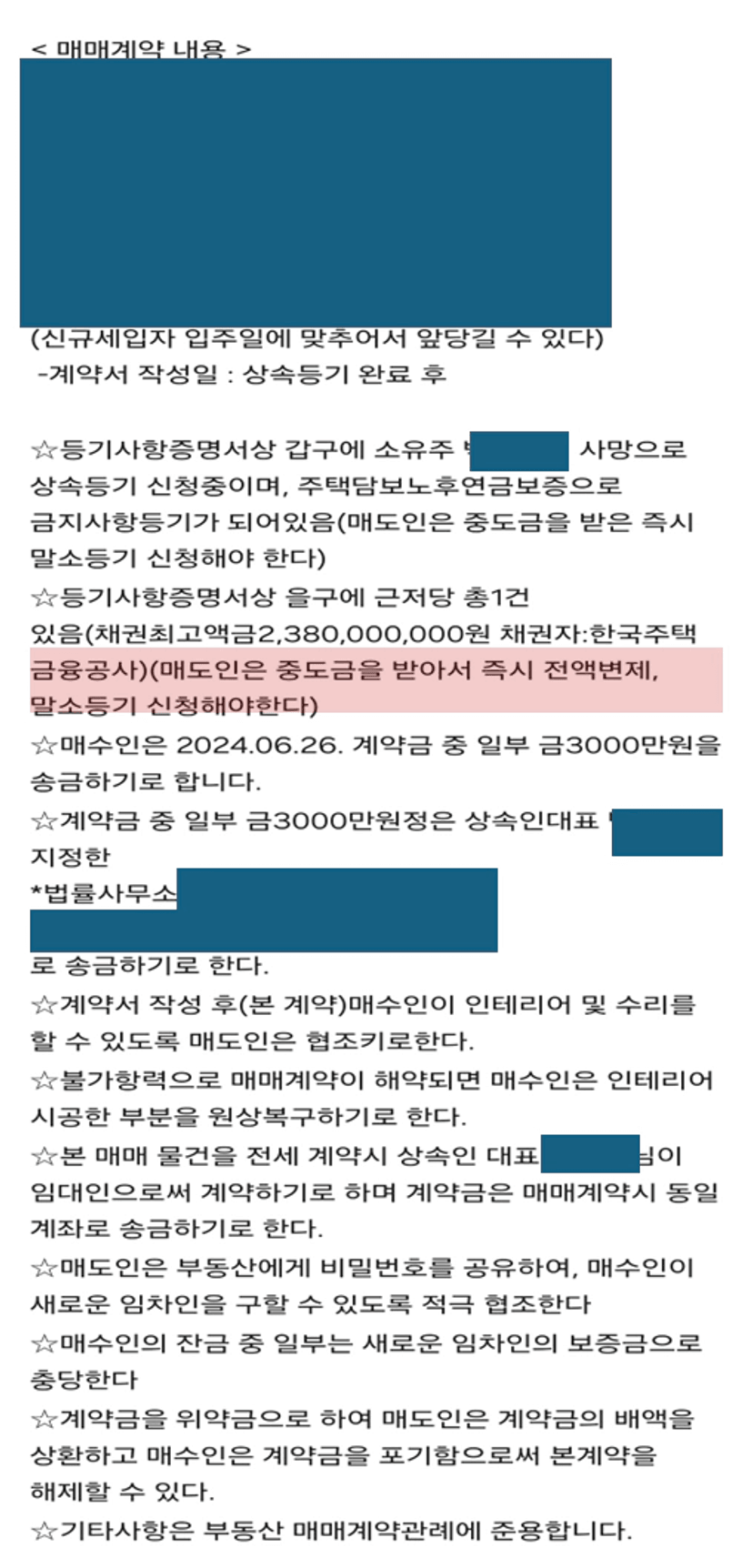 꼭! 매매가-근저당 금액으로 넘어가지 않도록 계약금 설정을 잘 해야됩니다