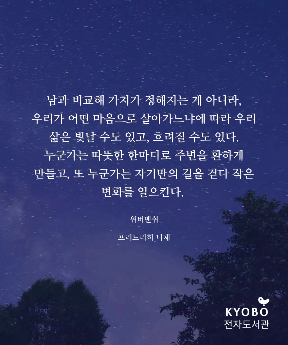 남과 비교해 가치가 정해지는 게 아니라, 우리가 어떤 마음으로 살아가느냐에 따라 우리 삶은 빛날 수도 있고, 흐려질 수도 있다.