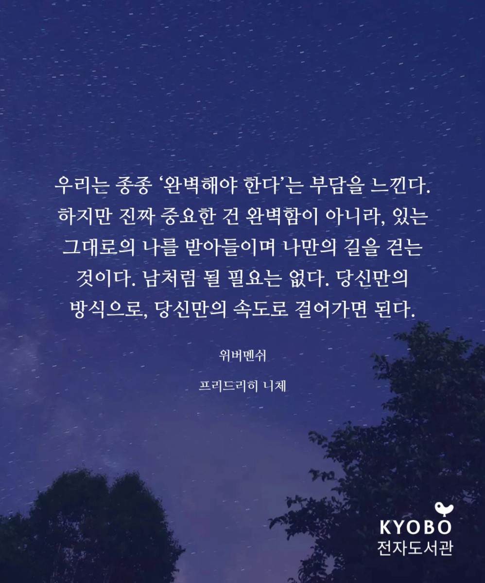 우리는 종종 ‘완벽해야 한다’는 부담을 느낀다. 하지만 진짜 중요한 건 완벽함이 아니라, 있는 그대로의 나를 받아들이며 나만의 길을 걷는 것이다. 남처럼 될 필요는 없다.