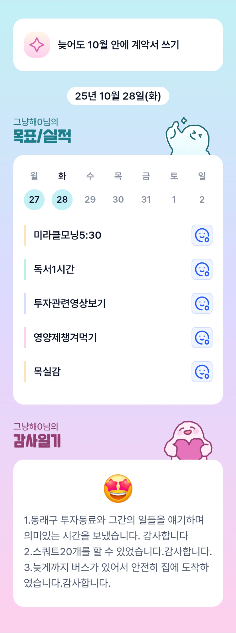 챌린지에 참여하는 멤버에게 응원 댓글을 남겨주세요. 혼자가면 빨리 가지만 함께 가면 멀리 갈 수 있어요.🚶♀️🚶♂️