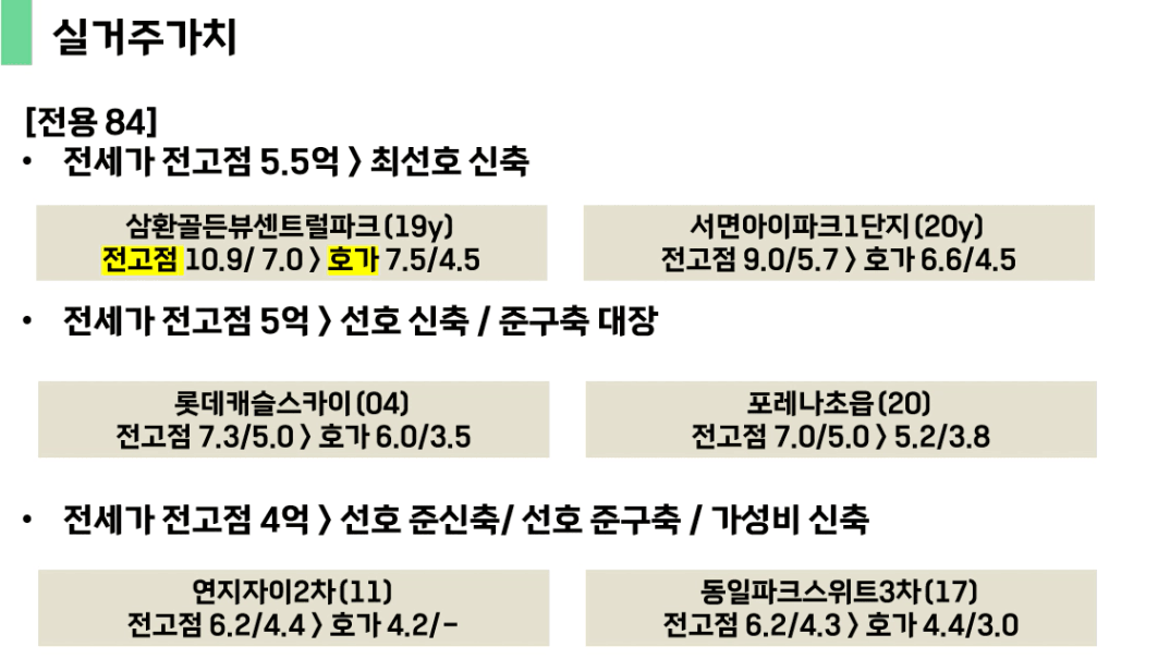 2. 전세 전고점이 높은데 저렴한 단지를 우선순위로 선정