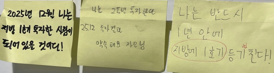 저는 온라인 강의였지만, 포스트잇에 “25년 12월 투자결과 약속해요 자모님”