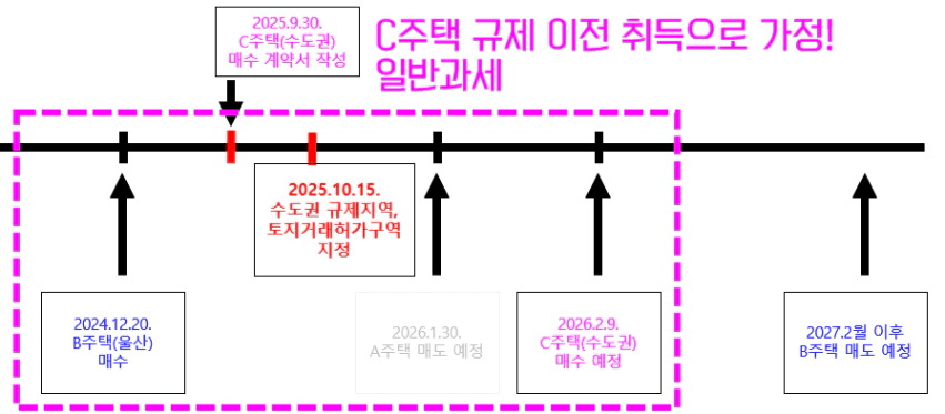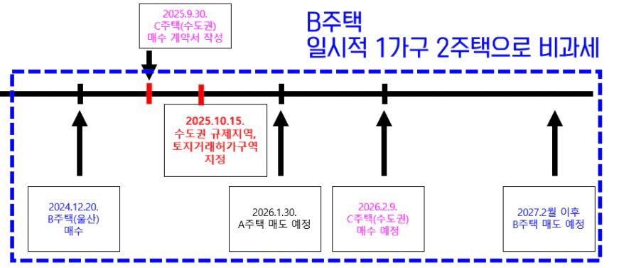 B주택: 일시적 1가구 2주택 → 양도세 비과세