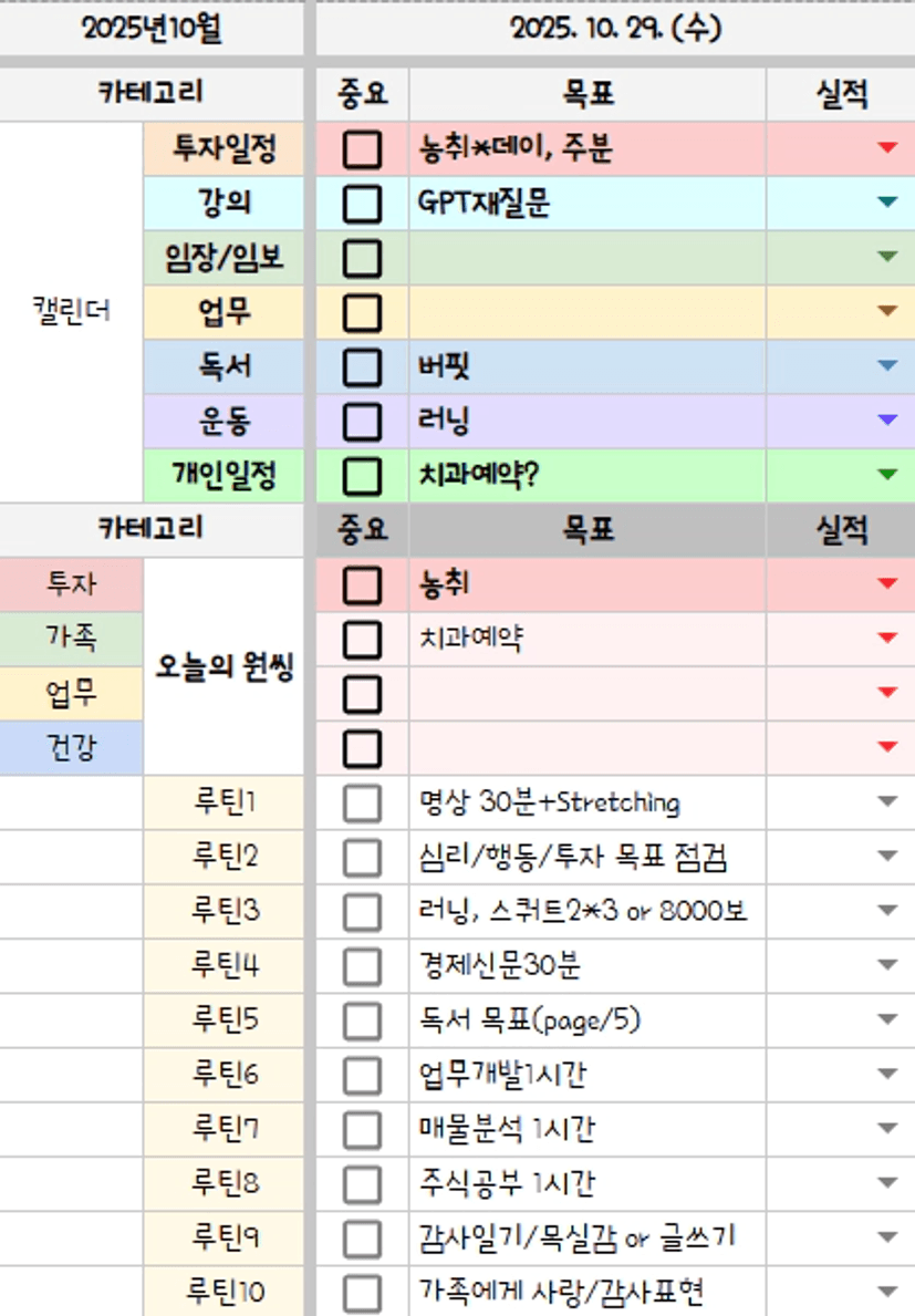 아침에 계획을 세우고 저녁에 복기를 합니다.