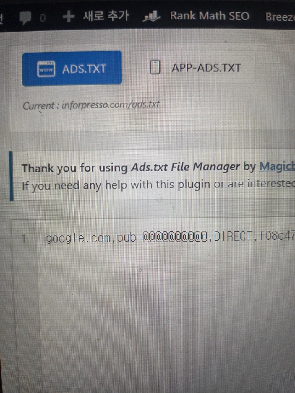 질문 2) 아래에 adx.txt를 입력하려고 플러그인을 설치했어요.