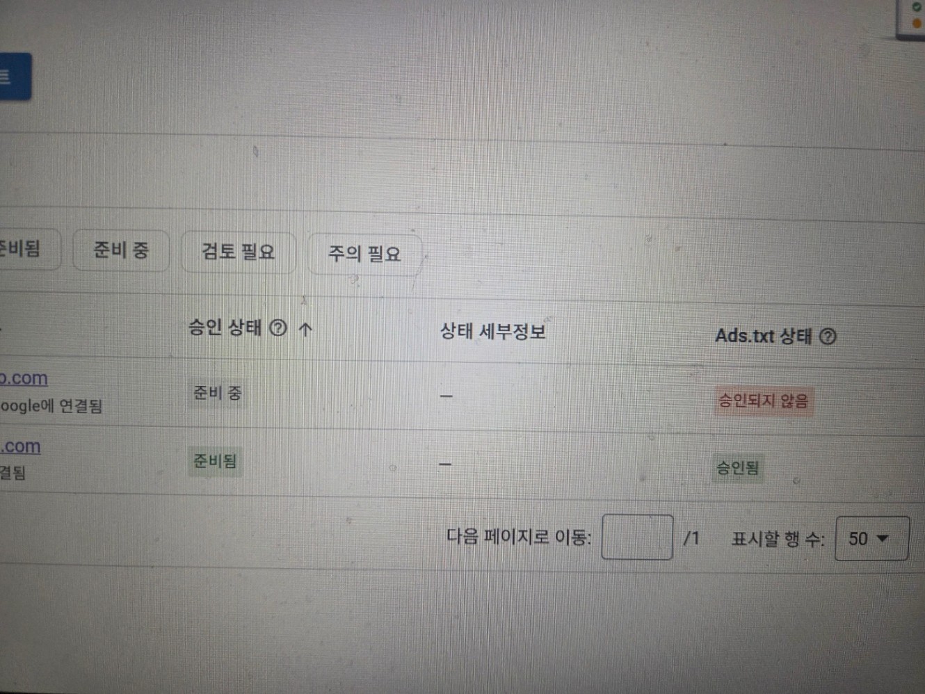 cf. 애드센스에서는 아래와 같이 <준비중>으로 확인 됩니다.