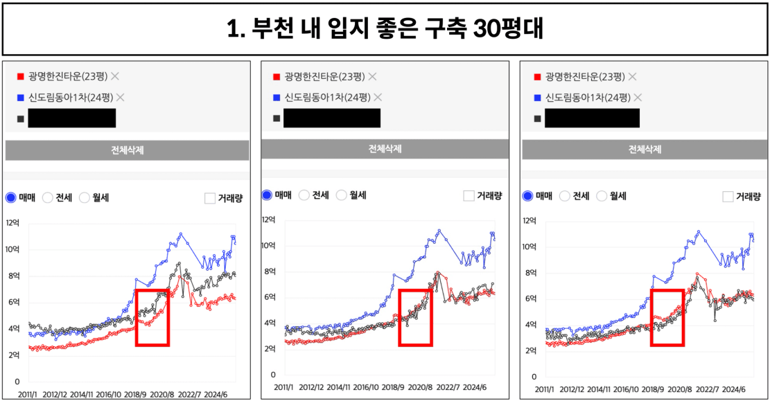 확인해보니 확실히 부천은 신도림, 광명에 비해