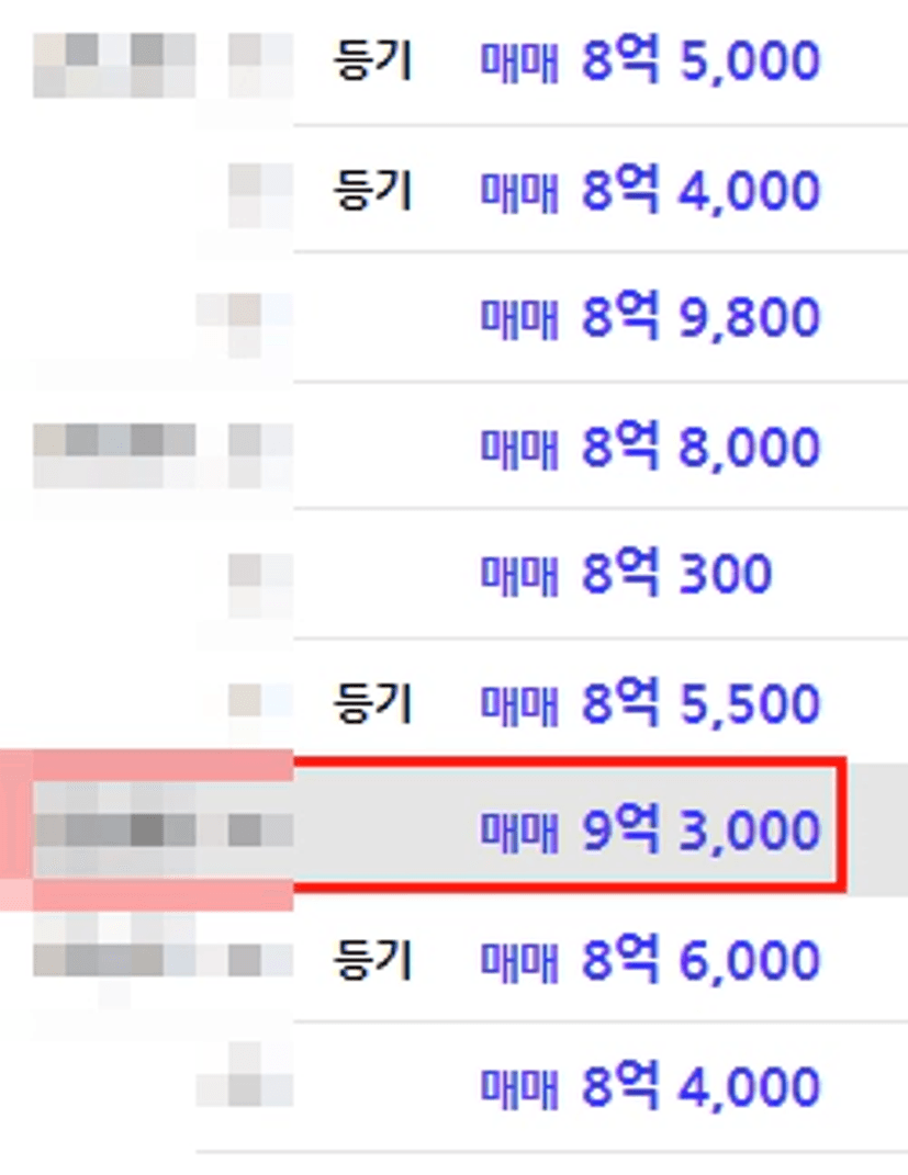 직전 실거래 대비 3억이 오른 호가의 높은 가격이었습니다,