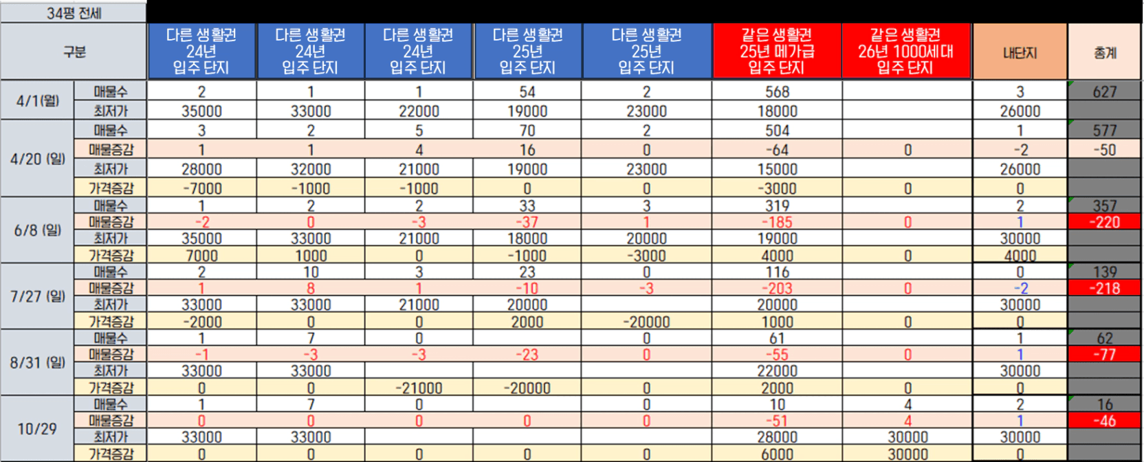 당연히 제 단지와 생활권 모든 단지의 전세가를 휘청이게 했습니다