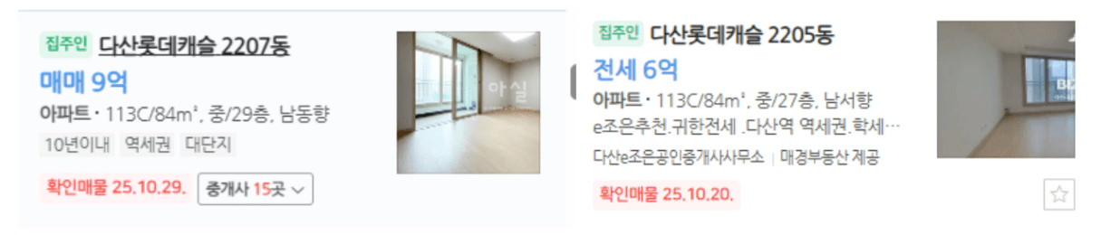 다산역 인근 브랜드 단지들이 비슷한 고점 형성