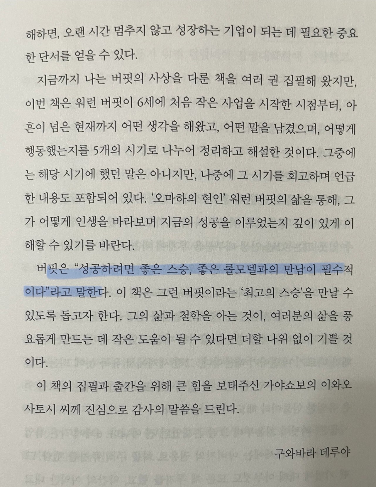 p.7 버핏은 "성공하려면 좋은 스승, 좋은 롤모델과의 만남이 필수적이다" 라고 말한다.