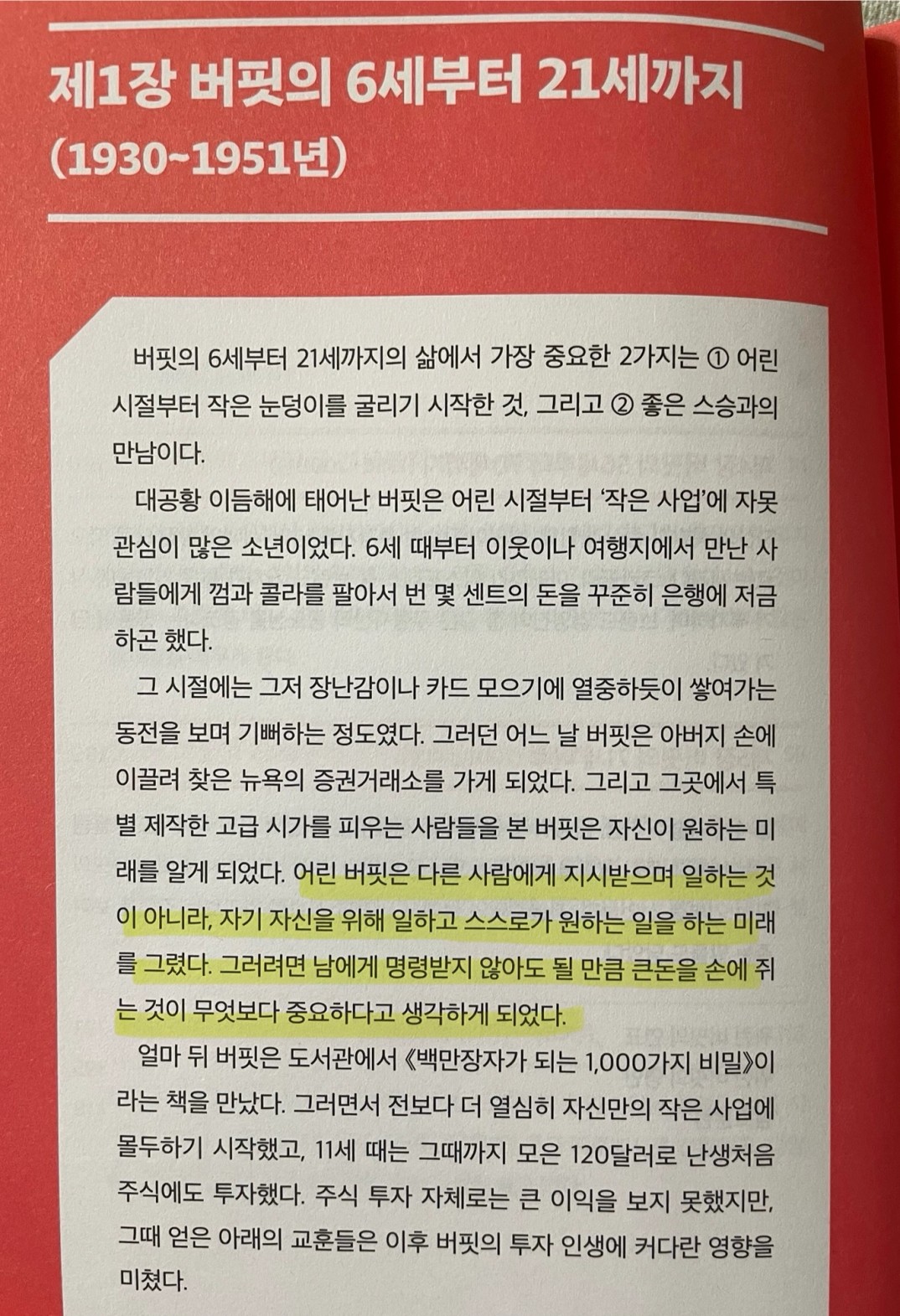 오늘 읽은 내용은 1장 '버핏의 6세부터 21세까지' 입니다.