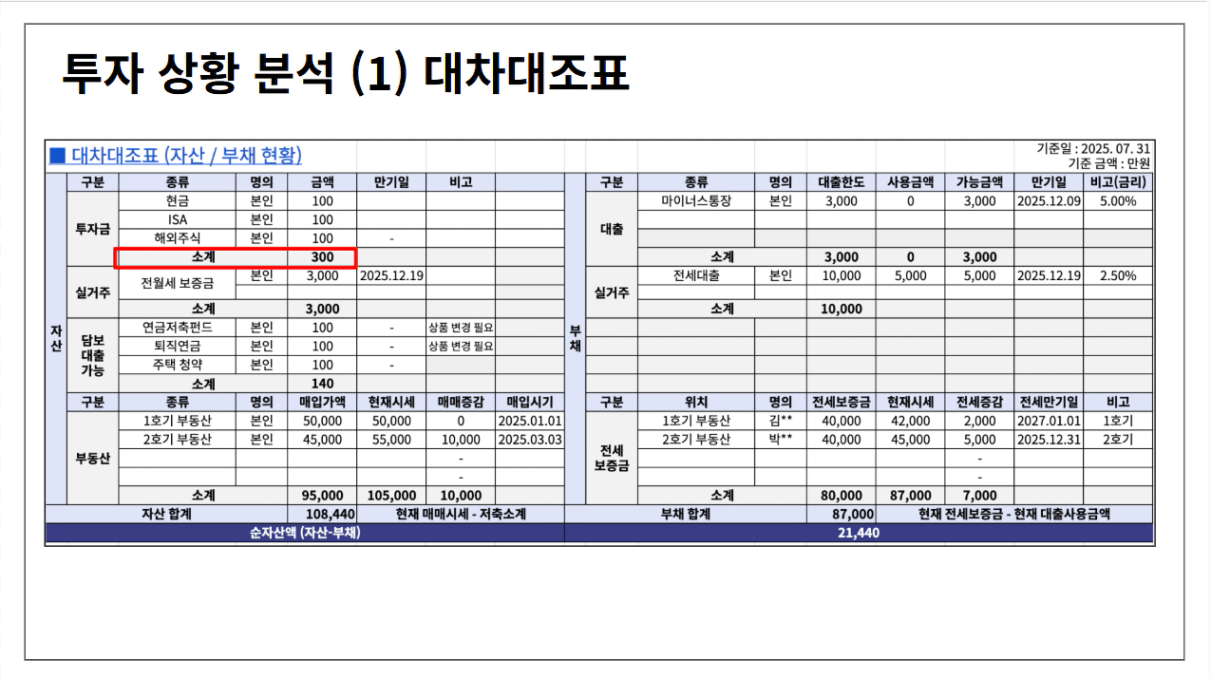 1. 활용 가능한 종자돈 면밀히 파악하기 (대차대조표)